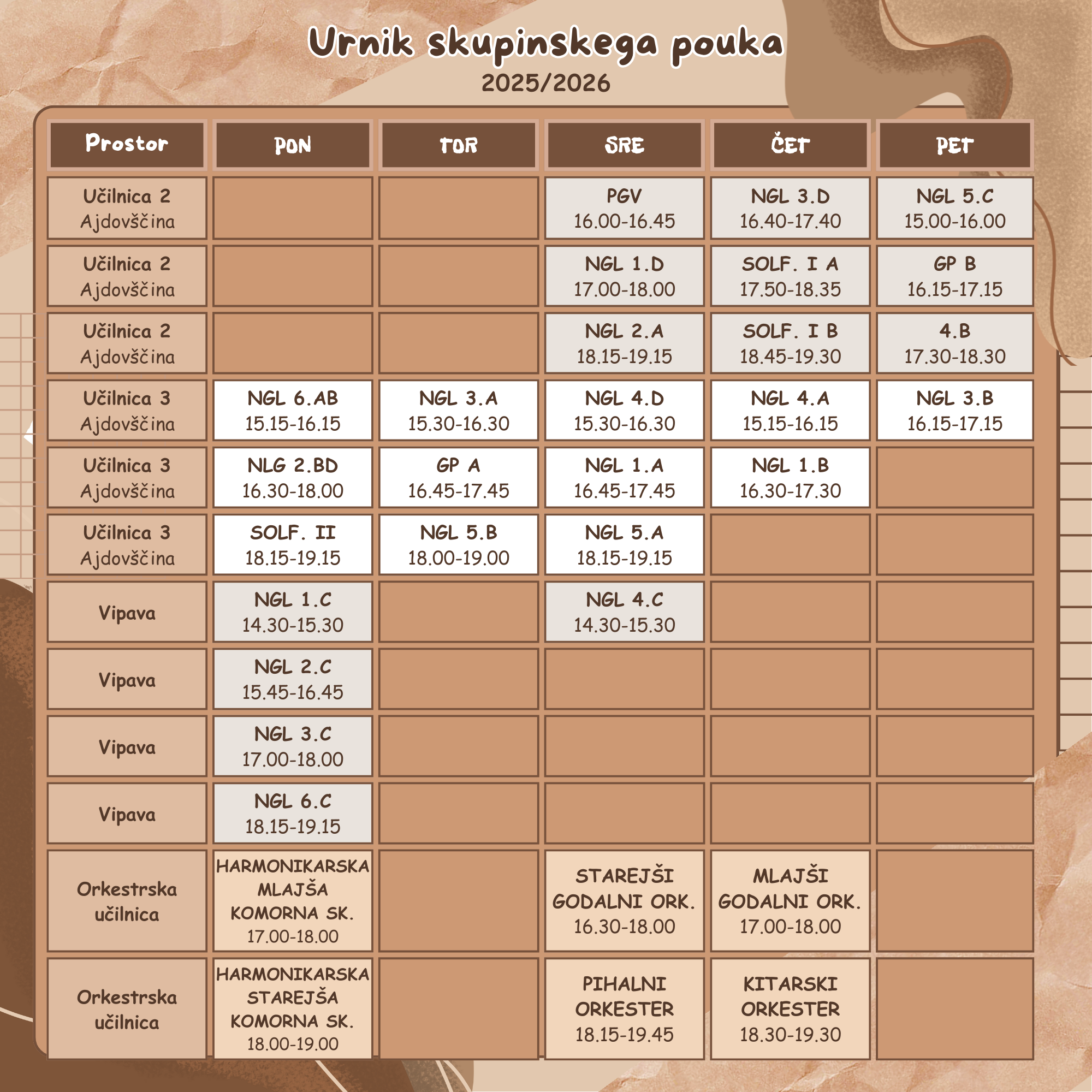 URNIK skupinskega pouka 2025/2026